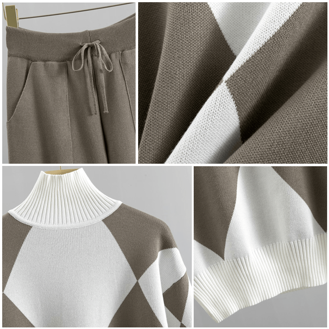 Crafted from sumptuous viscose for a stretch handle, the ensemble consists of a knitted turtleneck and matching pants.