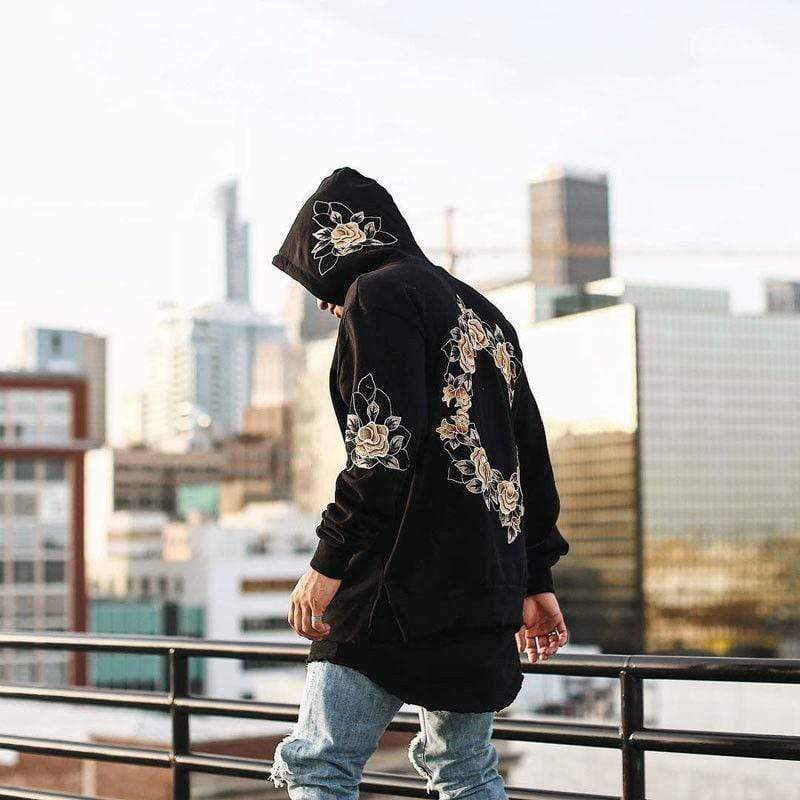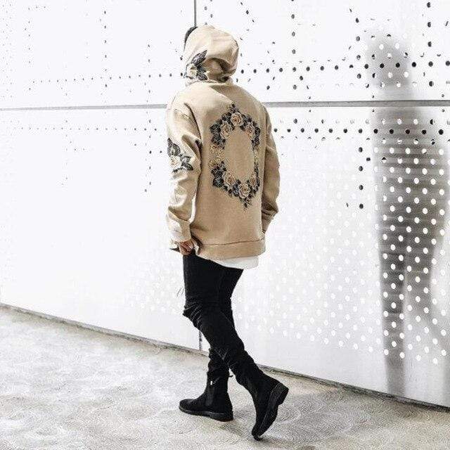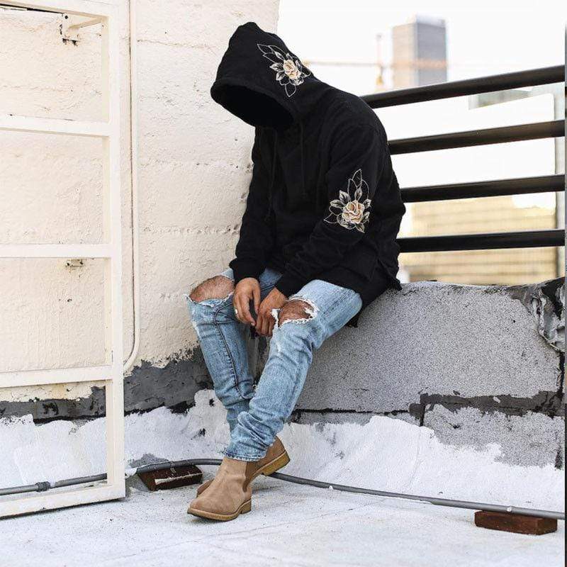 Pullover sweatshirt in midweight cotton blend featuring hood and flower embroidery at sleeve. Stylish hoodie with hood and fashion make you more attractive.