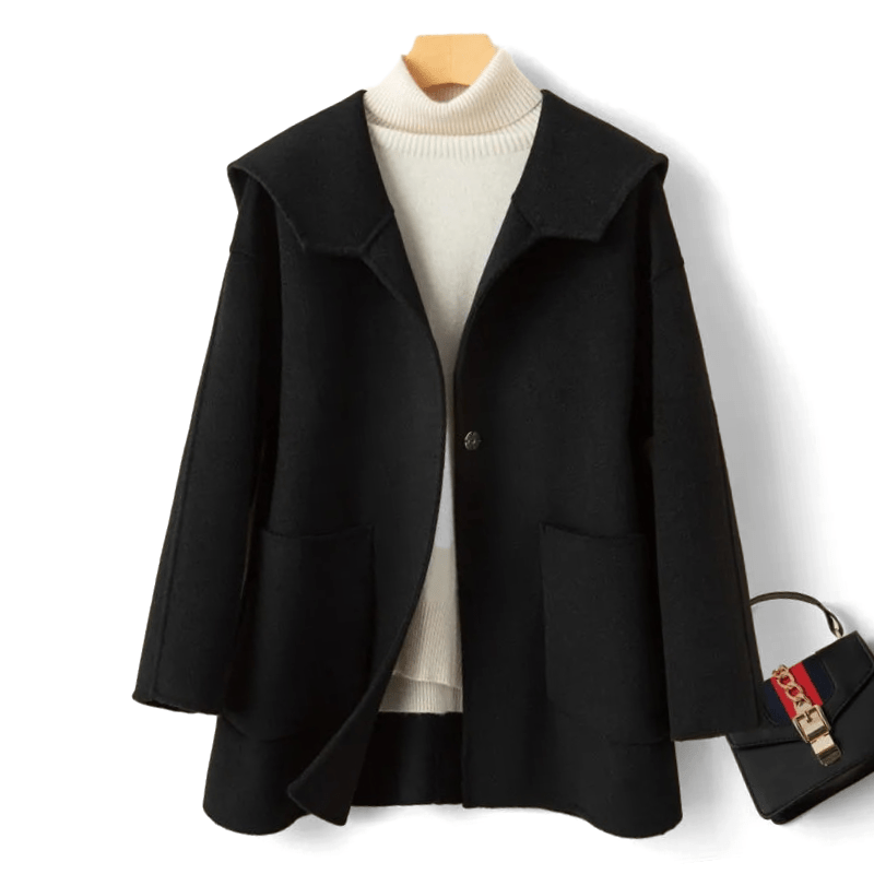 The exceptional craftsmanship is evident in the details, boasting a wide-waist design, versatile patch pockets, and an elegant single-breasted silhouette.