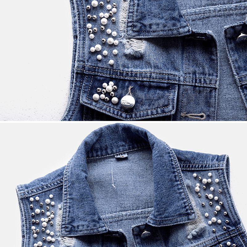Delicate beads embellish the shoulders and front pockets, adding a touch of whimsy and intrigue to the piece.
