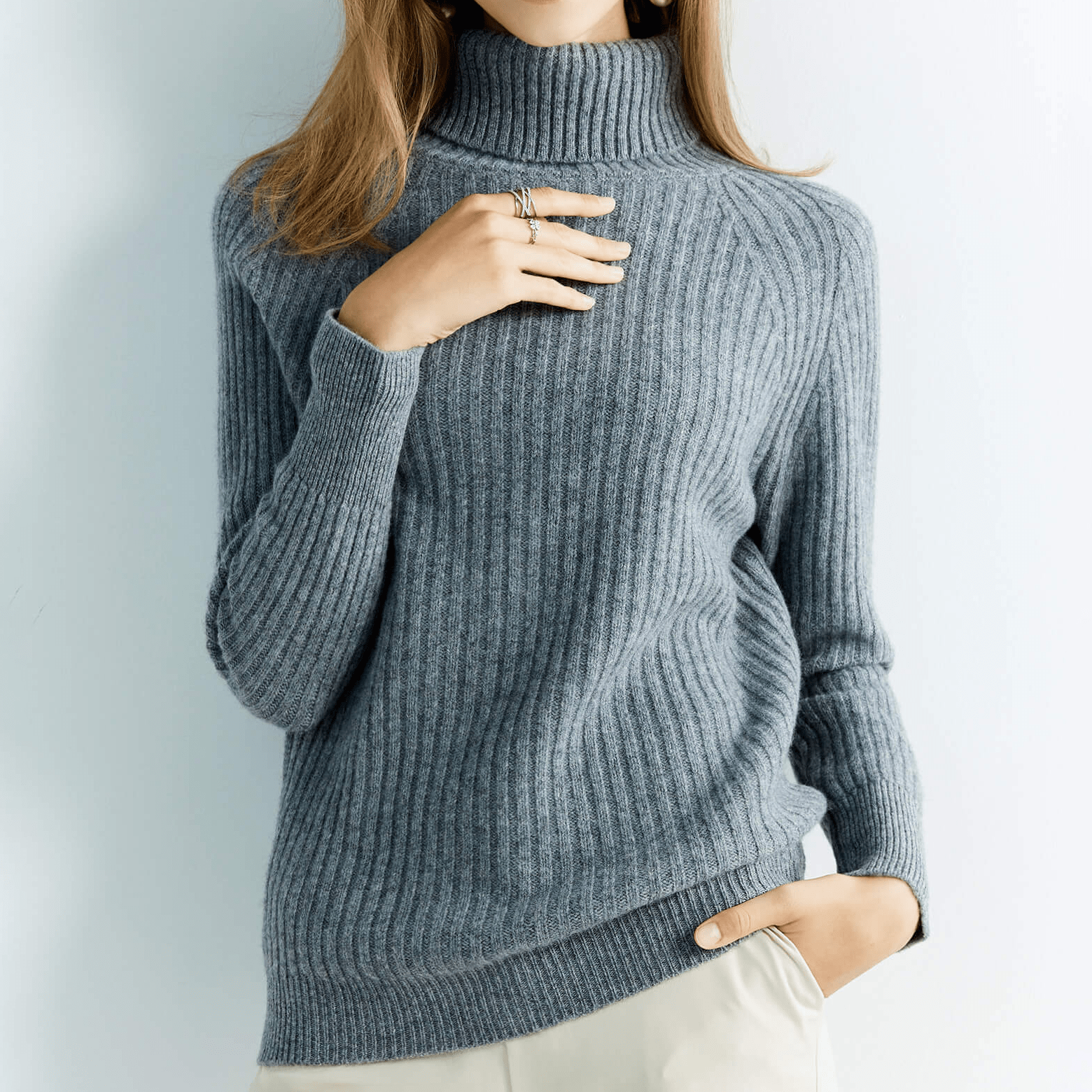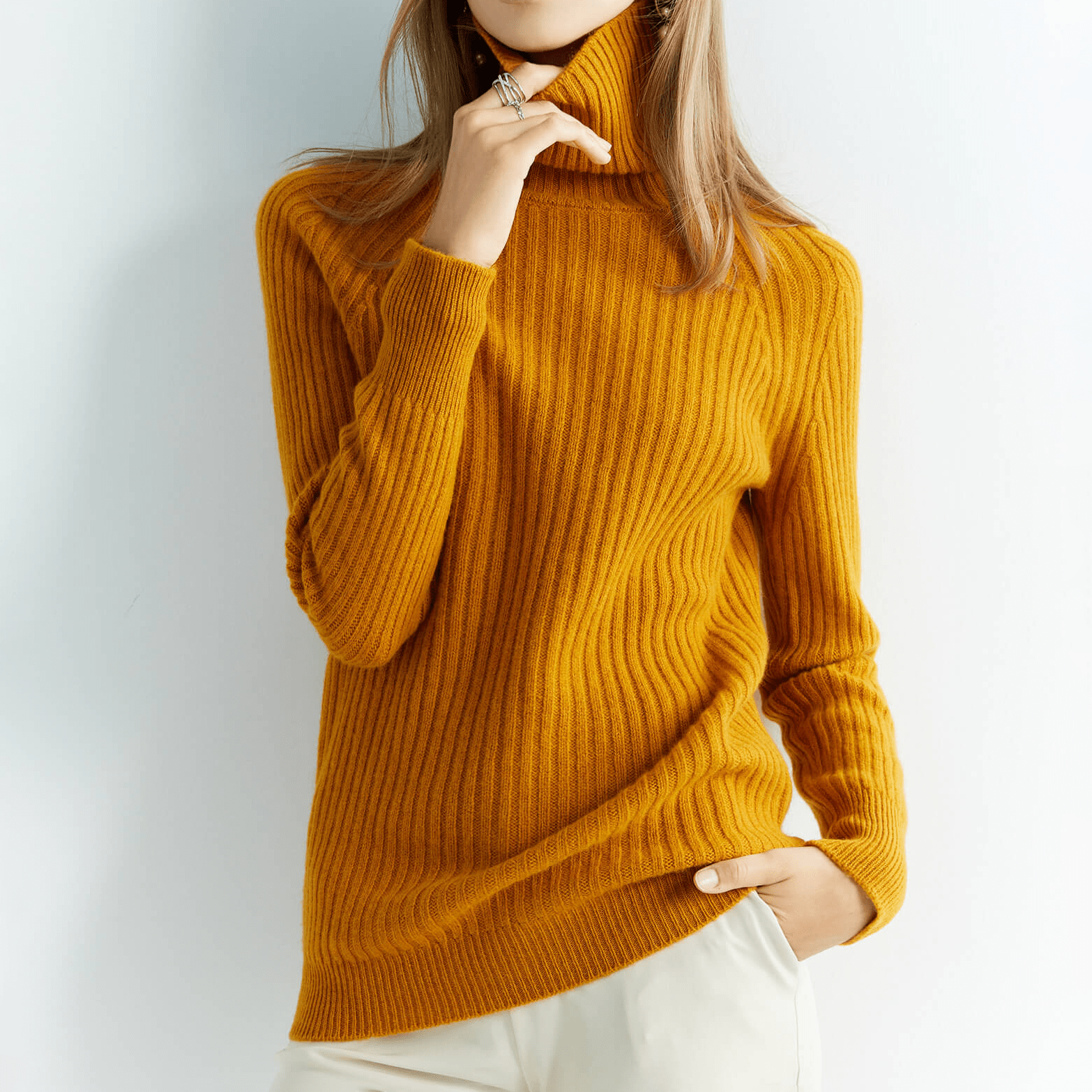 Add a laid-back vibe to weekend outfits with this elegant turtleneck.