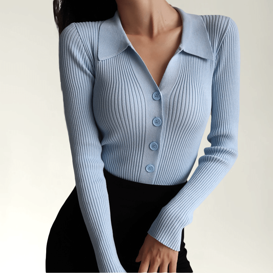 Cut to a snug fit, the button-up style is updated with a plunging V-neckline and classic long sleeves for day-to-night ease.